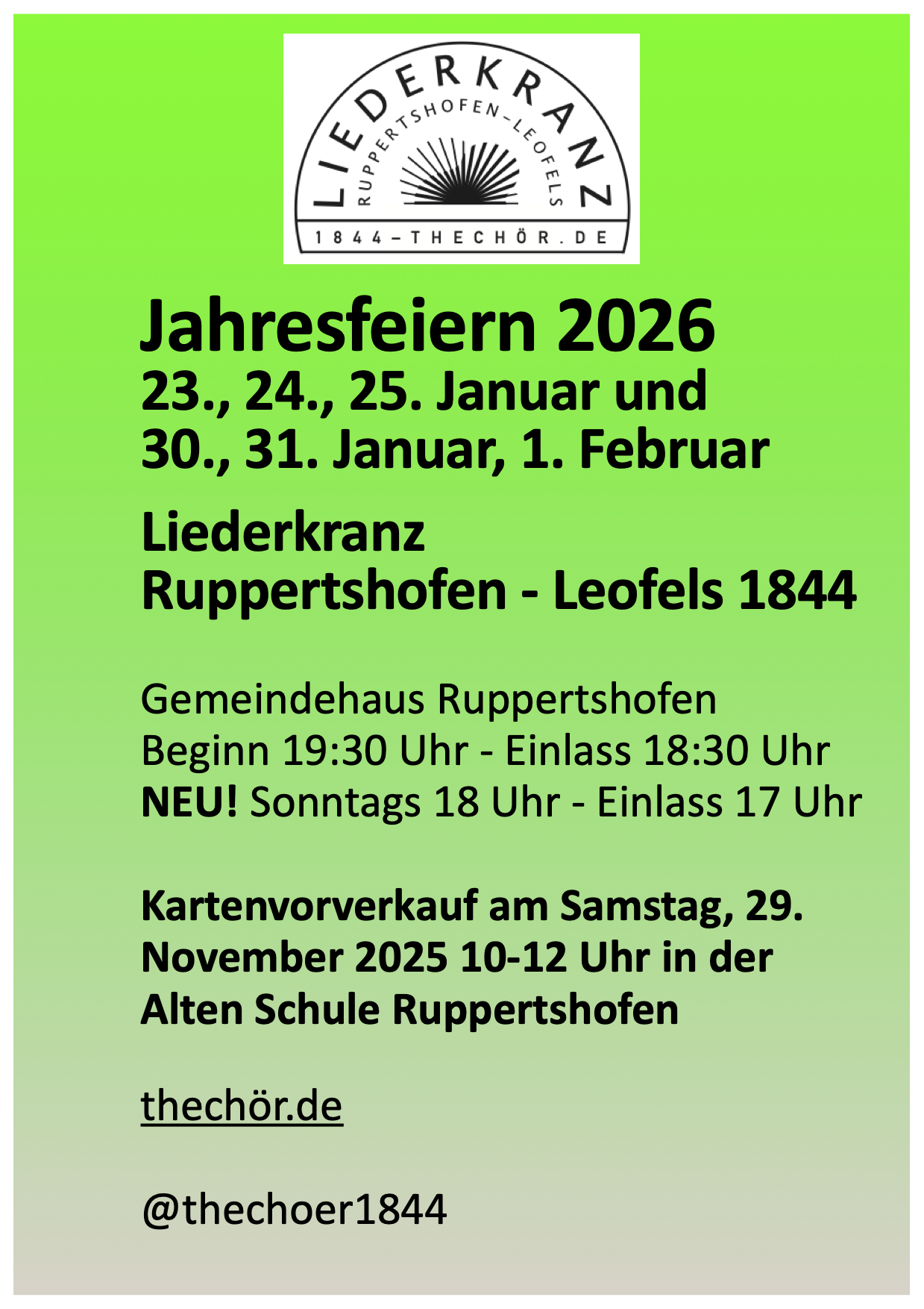 Liederkranz Ruppertshofen-Leofels – Vorverkauf Karten für die Jahresfeiern 2026